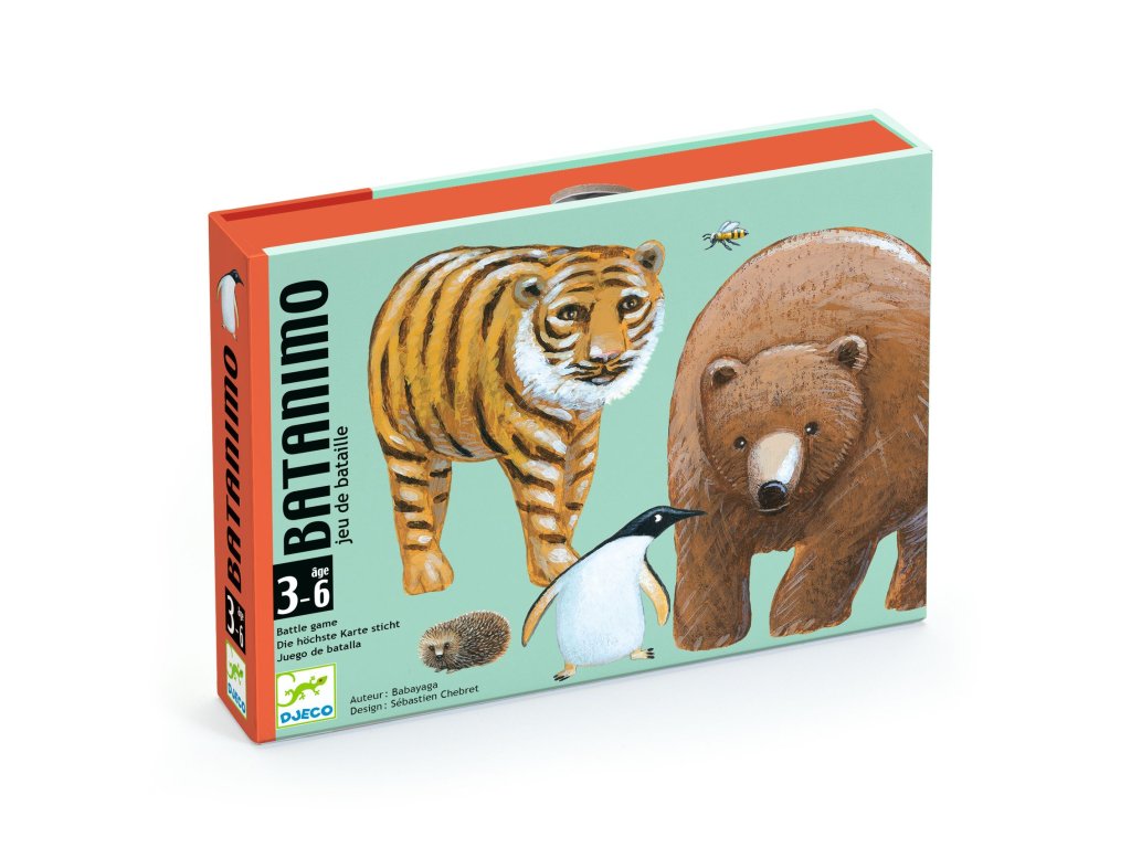 Djeco kartová hra Batanimo - prebíjaná sú veľké, pútavo ilustrované a odolné karty s jednoduchými pravidlami a krátkym herným časom.