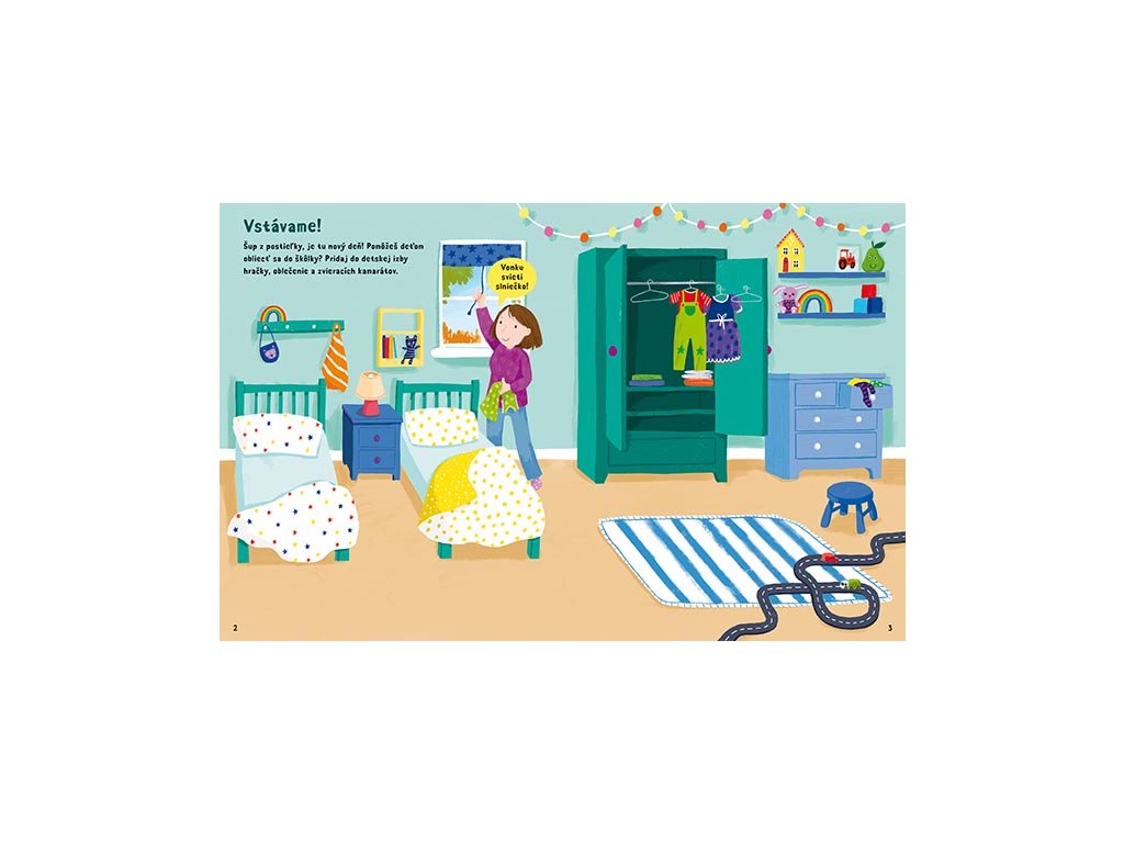 Knižka so samolepkami Môj deň od Jiri Models obsahuje 16 farebných strán a 8 strán samolepiek na dolepenie.