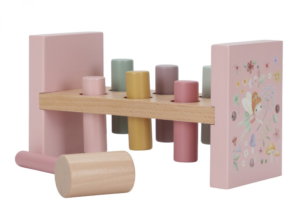 Ťuk sem, ťuk tam! Dokáže vaše dieťa zatĺcť všetky kolíky? S touto krásnou drevenou zatĺkačkou z kolekcie Fairy Garden si deti užijú kopec zábavy – a zároveň si nenápadne rozvíjajú jemnú motoriku, koordináciu a sústredenie.