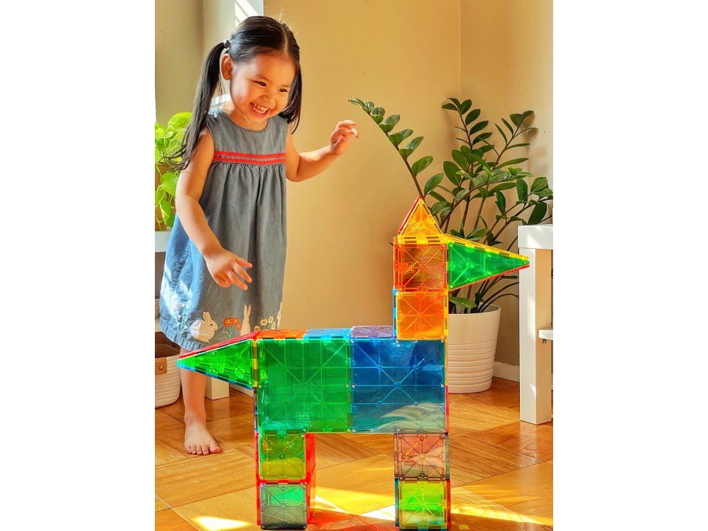 Najpredávanejšia magnetická stavebnica od Magna-Tiles! Sada obsahuje 100 farebných štvorcov a trojuholníkov rôznych veľkostí.