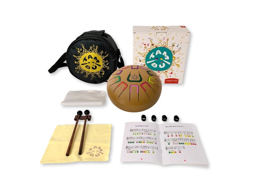 Tambú Zlaté je čarovný kovový melodický bubienok, ktorý rozžiari oči vášho dieťaťa a naplní váš domov harmóniou. Jednoduché hranie bez falošných tónov prinesie radosť deťom od 3 rokov aj dospelým, pričom podporuje sústredenie, kreativitu a relaxáciu.
